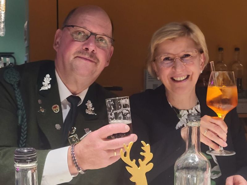 An seiner Seite steht Petra, seine treue Begleiterin seit fast 50 Jahren. Sie unterstützt ihn nicht nur bei all seinen Aufgaben, sondern ist selbst ein fester Bestandteil unserer Gemeinschaft. Dass die beiden in ihrem Jahr der Rubinhochzeit unser Kompaniekönigspaar sind, zeigt einmal mehr, wie tief ihre Verbundenheit mit unserer St. Hubertus Kompanie ist.